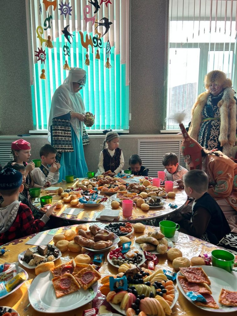 Мереке соңында дастарқан жайылып, балалар қонақжайлық дәстүрлерімен танысып, жылы әрі достық атмосферада уақыт өткізді.